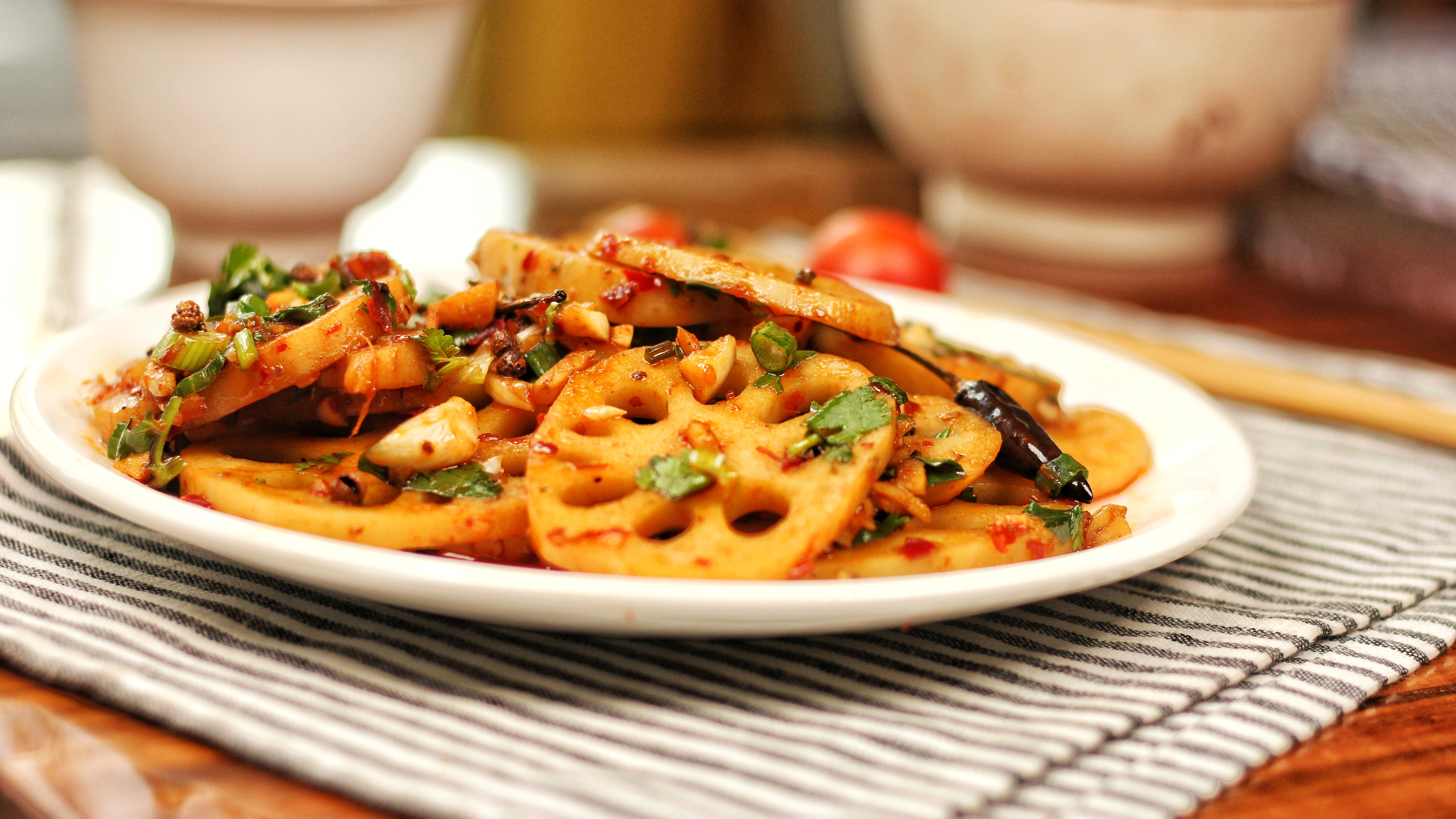 美味的麻辣莲藕炒腊肉
