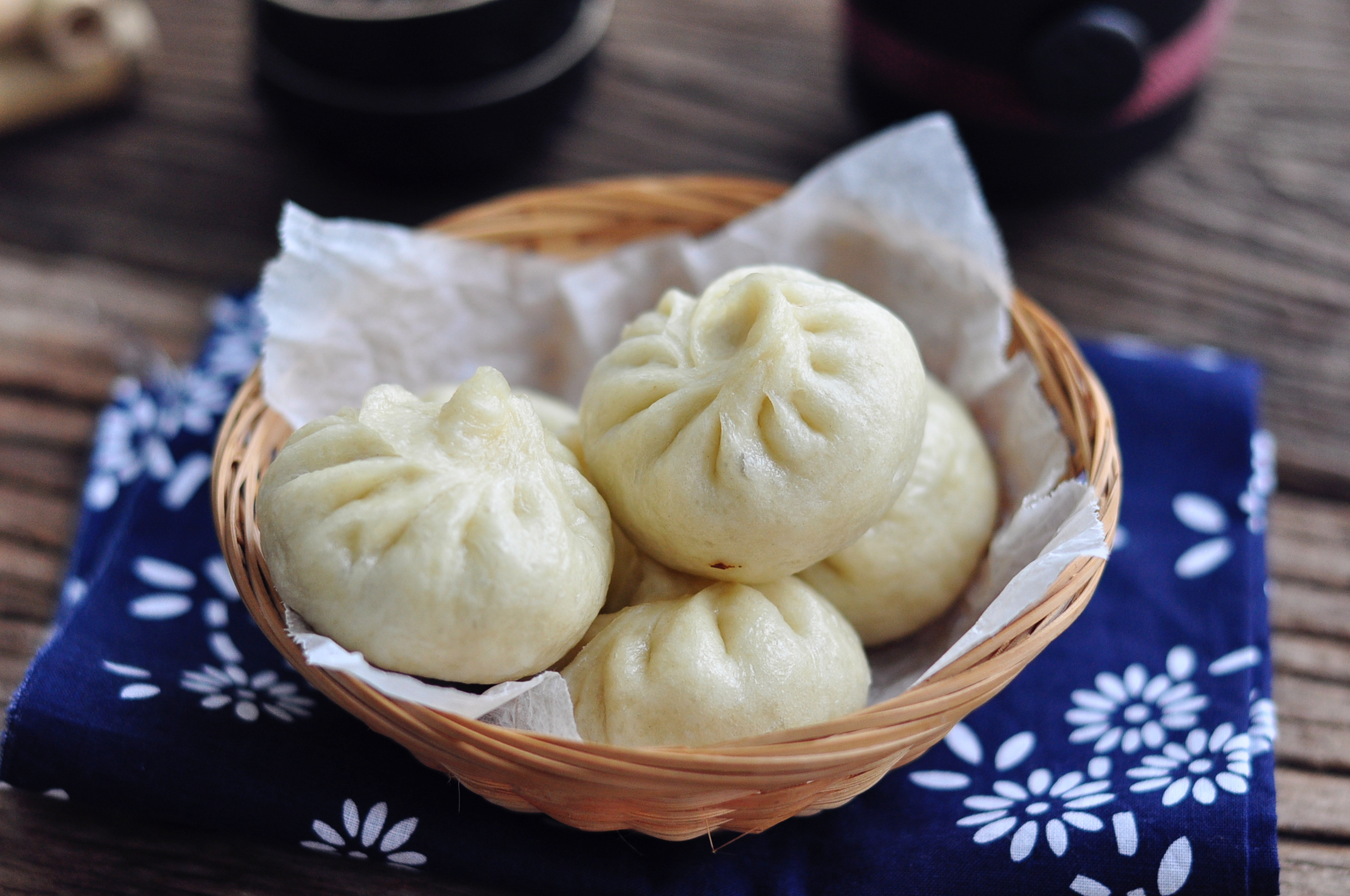 8、接着往包子皮里面放入适量的鸡肉三丁包子馅,再用手包起来,做成包子,再放入蒸锅里面,蒸熟,即可;