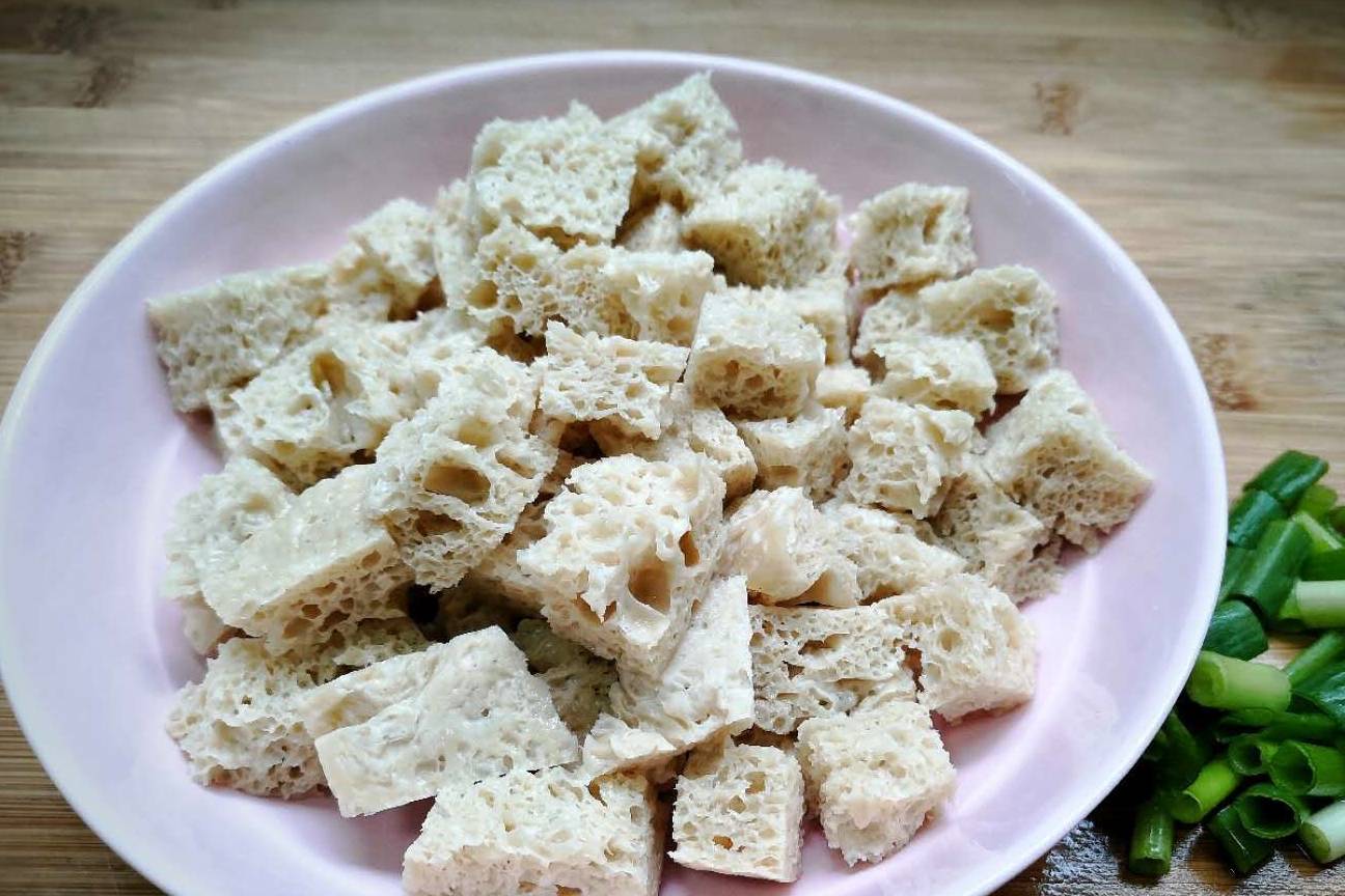 做法:1、先把食材都处理好,把面筋用清水冲洗一下,再捏干里面的水分切成小块;