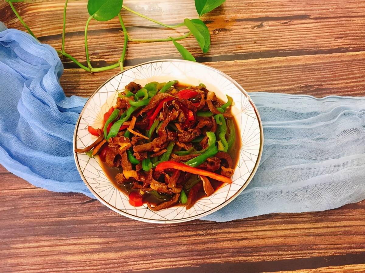 5、再加入适量的西瓜酱、酱油、蚝油、胡椒粉、盐。继续翻炒到食材成熟入味,就可以盛入盘子里,开吃啦;