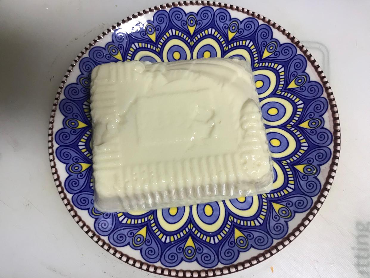 5、这样就可以很轻松将其盒内的内脂豆腐完整地取出来了,如图所示。