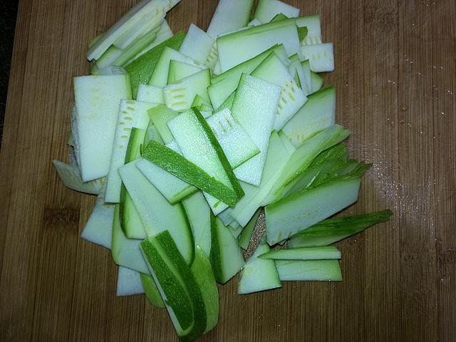 食材:西葫芦1个,青椒,红椒,鸡蛋,大蒜