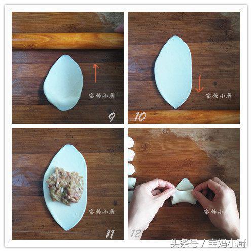 12 从内侧拉面皮把肉馅盖住