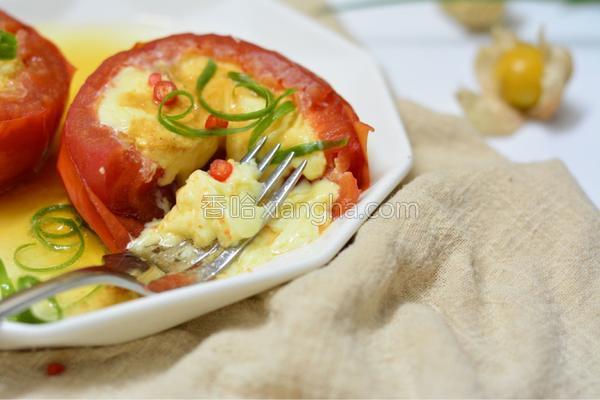 1.番茄洗净切开顶部三分之一,将中间挖空备用。