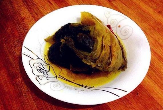 最后即是鱼骨剁成小块儿,鱼头分成两半,把碎碎的鱼肉和血水在清洁洁净放在一个大盘子备用