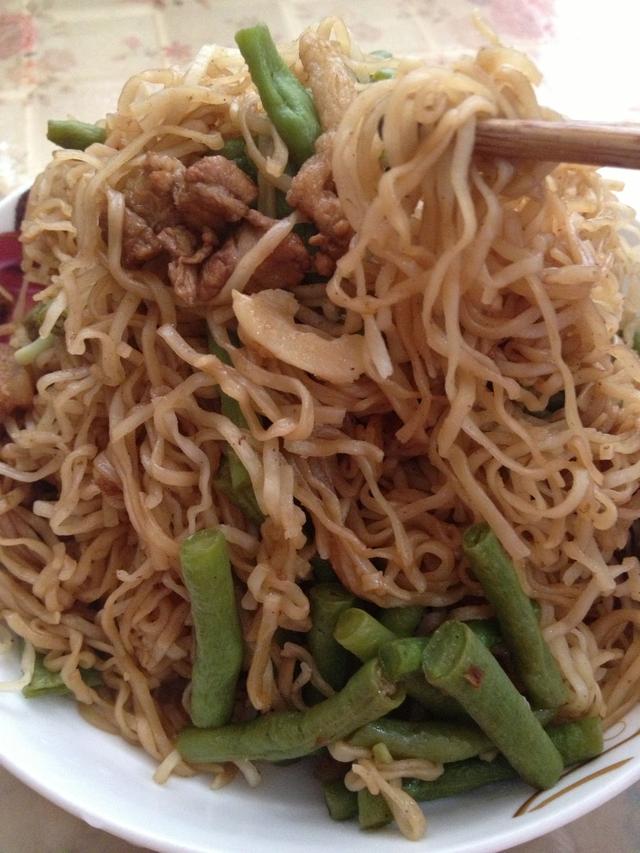 记得上回,买了三块钱的面条,两块钱的豆角,外掺一小溜五花肉,媳妇蒸了大半盆卤面,我们一家四口人竟然没够吃的!