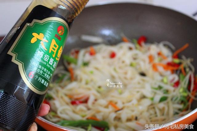 5.继续大火把河粉加入,翻炒 ,要不断翻炒二手筷子翻炒