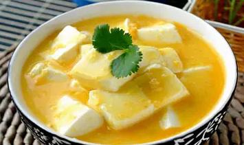 材料:豆腐300克,猪里脊肉75克,鲜香菇100克,,蘑菇100克,蚕豆仁100克,南瓜400克,盐1茶匙,胡椒粉1/8茶匙