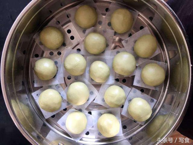 第1步,准备所需材料 咸蛋黄上锅沸水蒸12min,蒸熟的咸蛋黄压成粗泥状态,加入2~3匙沙拉酱,搅拌成团。准备好的肉松放入蛋黄泥中,搅拌成团,加入适量的色拉油,使其易成团不干燥,馅料部分就完成了。