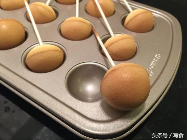 如果棒棒糖模具上不能插入棒棒糖棍,或者烤箱不够大,可以将蛋糕烤好后拿出来再插棍。