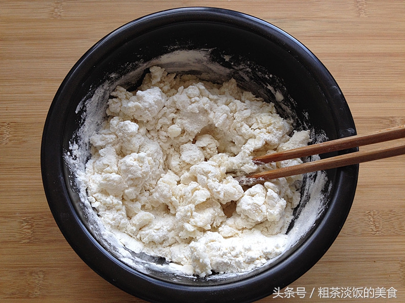 2、面团属于半烫面,这样吃起来酥脆不粘牙,饼放凉了皮也不会硬