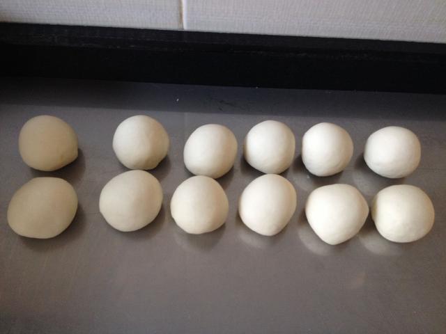 7、再把醒好的白面团同样分成大小均匀的剂子,并揉圆