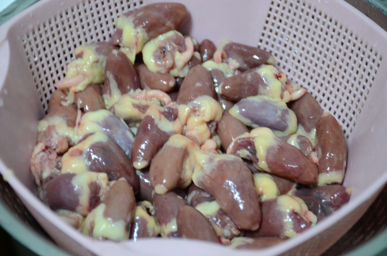 【配料】鸡心,青蒜,酱油,红辣椒,料酒,盐等