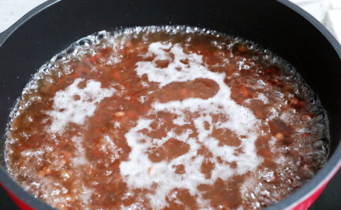 步骤2、将泡好的红豆放入锅中,锅可以选择电饭锅、砂锅或者比较深的电锅等,这个根据家中有的锅品进行选择即可。