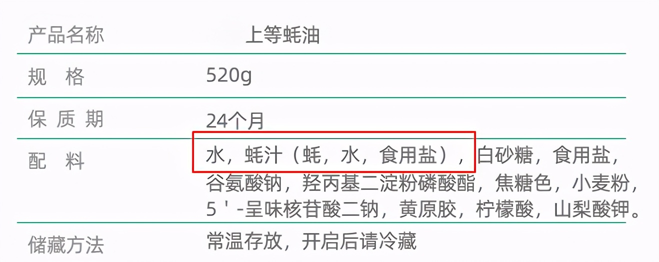 按照国家标准,生产蚝油,必须以生蚝为主要原料制作。只是到底用了多少生蚝,这个却没有统一的标准要求和说明。我们可以参考的是,国家要求原料用了多少,必须按照由高到低的顺序排列,所以在查看配料表时,我们也要知道这一点原则。