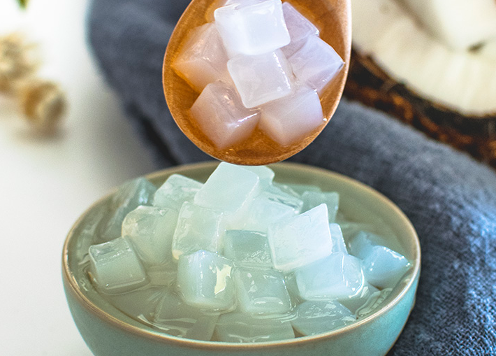 椰果实际上指的是椰子的果肉,本身椰果是很健康的,不健康的地方在于制作过程中,为了长期保存以及食用口感,不可避免会添加过量的糖分、食品添加剂、香精、防腐剂等添加剂,所以这也成为了它不健康的因素。