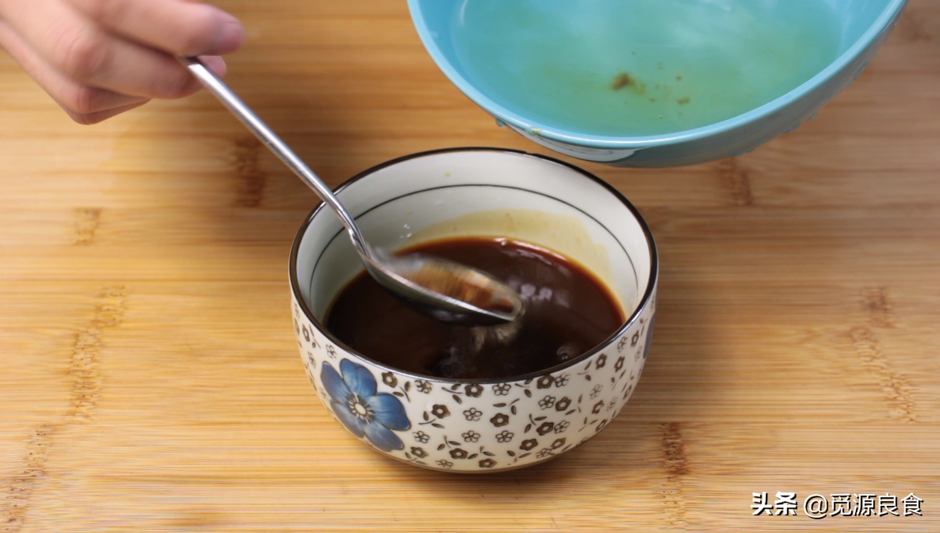 4、调制一个料汁:生抽2勺、老抽1勺、少许的蚝油、小半勺胡椒粉、1勺食盐、1勺淀粉、加入适量的清水搅拌均匀后,这碗调料汁就准备好了;