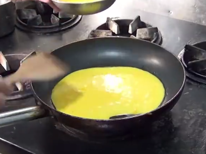 2、炒锅中加入食用油,油温6成热的时候下入搅拌好的鸡蛋,尽量稍微炒的碎一些,装盘备用。