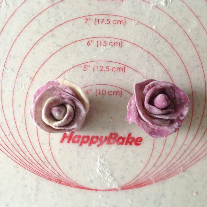 9、做好的玫瑰花依次摆放蒸锅内,大火蒸20分钟,拿出就可以食用了。