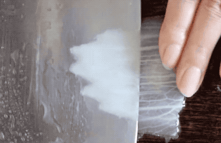 3、白菜帮凉透了后,用刀把白菜帮片成薄片,要稍微透明状的。