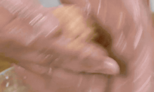 6、再打入2个鸡蛋,用手顺着一个方向搅拌上劲。