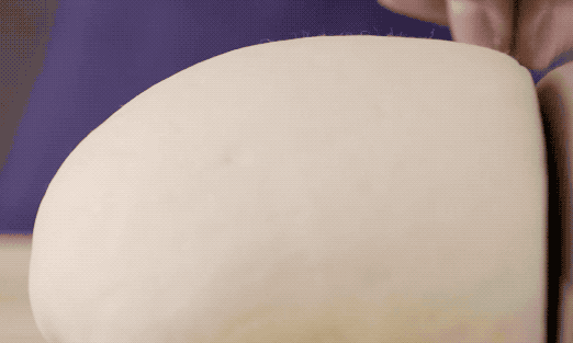 3、把面团醒发10分钟、10分钟后把大面团切两半,这样好操作。