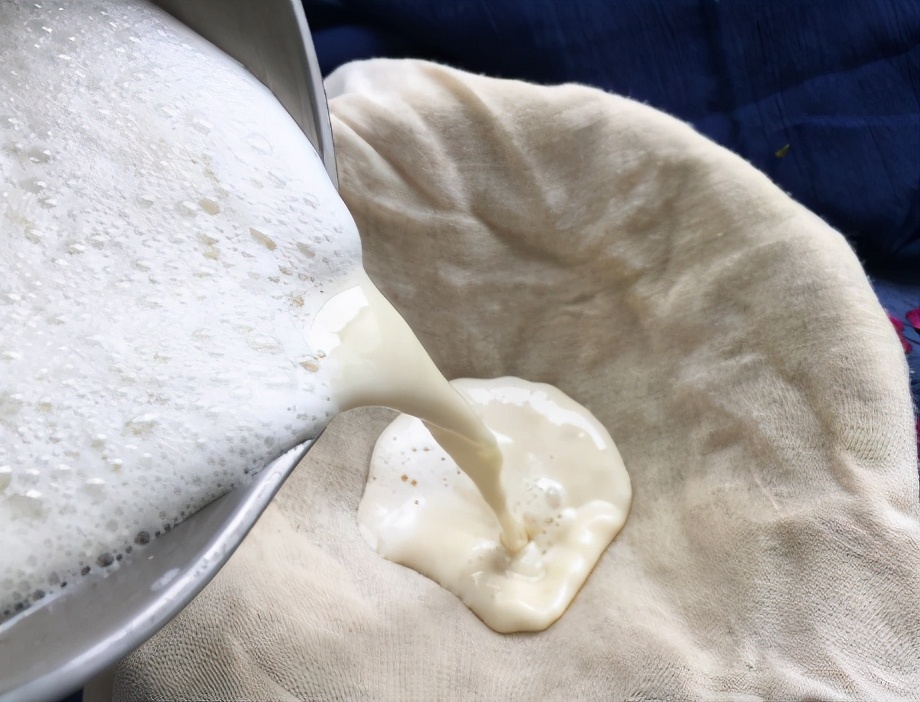 第二步,豆浆键,一次程序结束后,再次启动再打一遍,这样豆浆会更加细腻,打好的豆浆用一张干净的细纱布过滤一遍,去除豆渣;