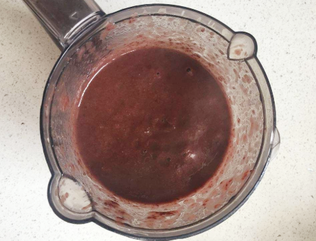 2、煮好的红豆放入料理机中打成泥,这个时候可以将多余的水滤出,因为红豆泥中的水分太多,后续要炒干便比较费时间;
