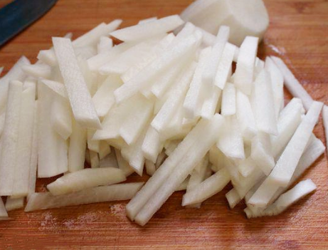 1、萝卜皮记得要去掉,这样萝卜才会更加脆爽好吃,用白萝卜或者是青萝卜都可以,萝卜建议切成条而不是片,粗细适中的萝卜条经过晾晒不会太过发干,反而更加软韧好吃;