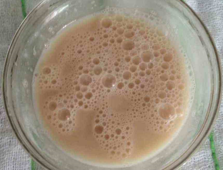 制作过程:第一步,牛奶稍微加热下,温热的状态放入酵母粉,将酵母粉融化在牛奶中,面粉和玉米面混合在一起,分次少许加入牛奶酵母液;