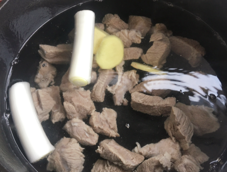 2、羊肉事先放入清水中浸泡半个小时,逼出血水,减轻羊肉的膻味,羊肉焯水的时候记得要冷水下锅,让羊肉受热均匀,便可更易逼出其中的杂质,羊肉吃着口感也会更佳,焯水的时候加上几片生姜,效果会更好一些;