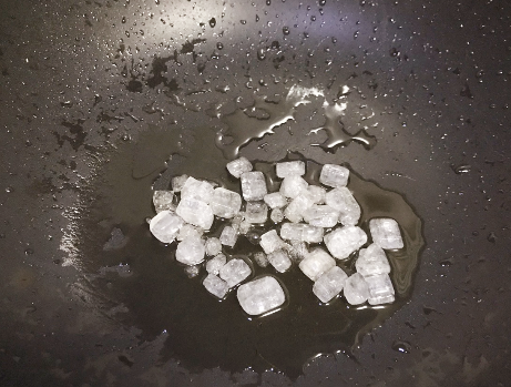 2、做红烧肉容易发苦?原来是用错糖了,教你正确做法,用冰糖炒糖色,记得全程小火,并且不停翻炒,直到将糖炒至完全融化,这样的糖色便不会发苦,而且色泽还非常红亮;