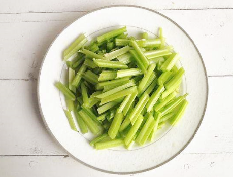 - 芹菜取杆用便可,无需叶子,这道菜还可搭配点火腿肠,喜欢的可以自行搭配,无需添加过多的调味料,用蒜瓣爆香,最后加上点食盐调味便可;