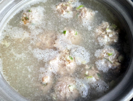 3、煮丸子需要保证在开水锅的状态下锅,注意用勺子的背部轻轻搅拌,保证丸子的完整性,具体的煮制时间需要根据实际的情况来定,将丸子煮熟便可。