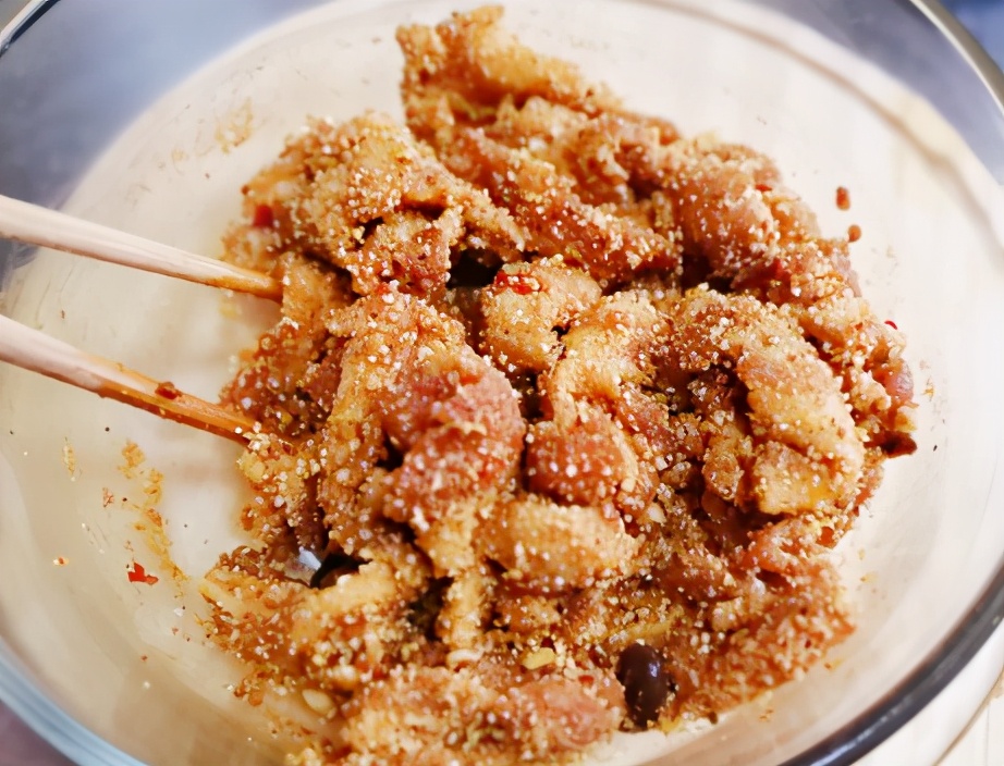 2、粉蒸肉不建议用纯瘦肉,有肥有瘦的吃着才香,加上各种调味料事先腌制一会,可以让肉的香味更足,而且还可帮助去除其中的腥味,米粉的用量可以稍微多一点,担心粘裹不上的,可以加上一点点水,另外猪肉中记得要加上食用油,锁住水分,让猪肉更加嫩滑多汁;
