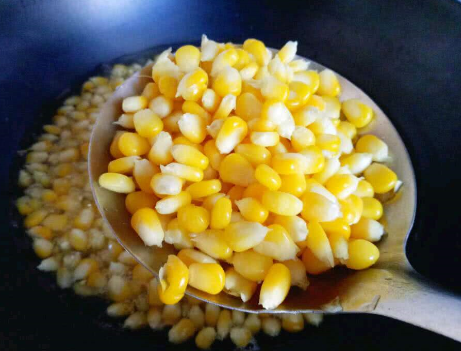 第二步,差不多10分钟的时间,腌渍好的芹菜与猪肉混合在一起便可,玉米粒准备出适量,在锅中添上水,待将水烧开后放入玉米粒;