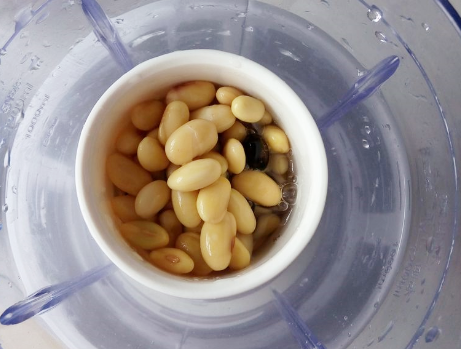 制作过程:第一步,黄豆准备出适量,将其事先淘洗干净,然后加上干净的水浸泡1个晚上,将黄豆泡好后,滤水,泡发的黄豆放入在豆浆机中;