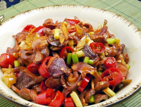 3、炒鸭胗需要掌握火候,记得要用大火快炒,时间掌握好了,鸭胗口感便会特别嫩,而如果时间太长,则容易使得鸭胗变老,口感也会受到一定的影响,这道菜中用到的许多调味料本身便有咸味,所以加盐的时候需要酌情。