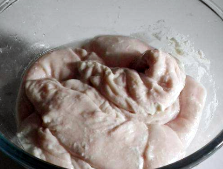 制作过程:第一步,猪大肠准备出适量,将其先用清水冲洗下,然后翻过来,加上点食盐,用手仔细搓一遍,用流动的水冲洗干净,然后再加上点干面粉;