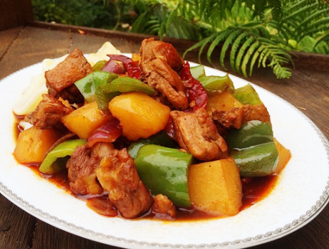 3、土豆别太早下锅,将鸡肉炖的差不多了再放入土豆,防止其变得绵软,整体的口感便会受到影响,为保证青椒清脆的口感,在出锅前放入锅中效果会更好。