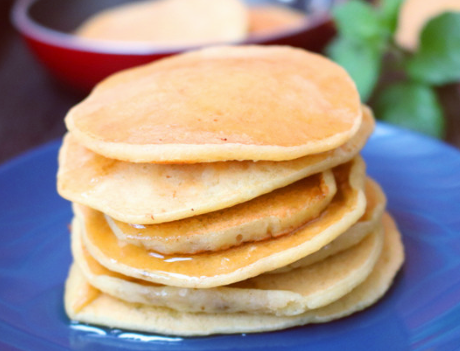 第五步,借助锅铲将其翻面,直到将另一面也煎好,即可盛出,按照这个方法将剩余的全部做好,吃的时候还可以搭配香蕉片和草莓等水果,营养更美味。