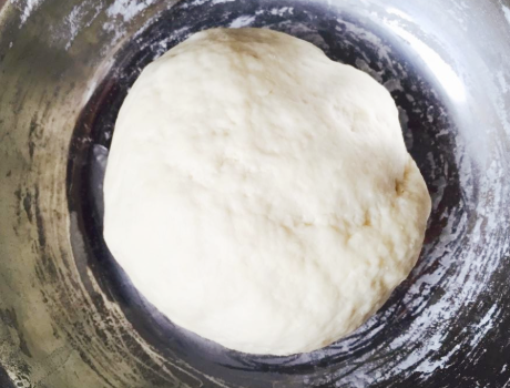 制作过程:第一步,面粉中加入酵母粉,分次少许加水,将其揉成一个湿润的面团,盖上保鲜膜放在一旁醒发一个小时,这个过程中,芝麻酱准备少许放入在碗中;