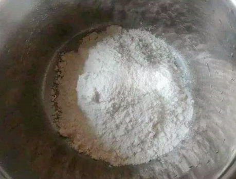 制作过程:第一步,小麦粉加上酵母粉和食盐,混合搅拌均匀,磕入2个鸡蛋,将其搅拌好,直至看不到蛋液的状态即可,然后将准备好的牛奶全部倒入在其中;