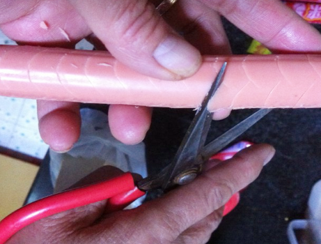 制作过程:第一步,首先根据个人的喜好选择火腿肠,然后将在火腿肠的一端用刀划一个小口,皮便可轻松撕下来,注意别将火腿肠弄断了,然后给火腿肠开花;