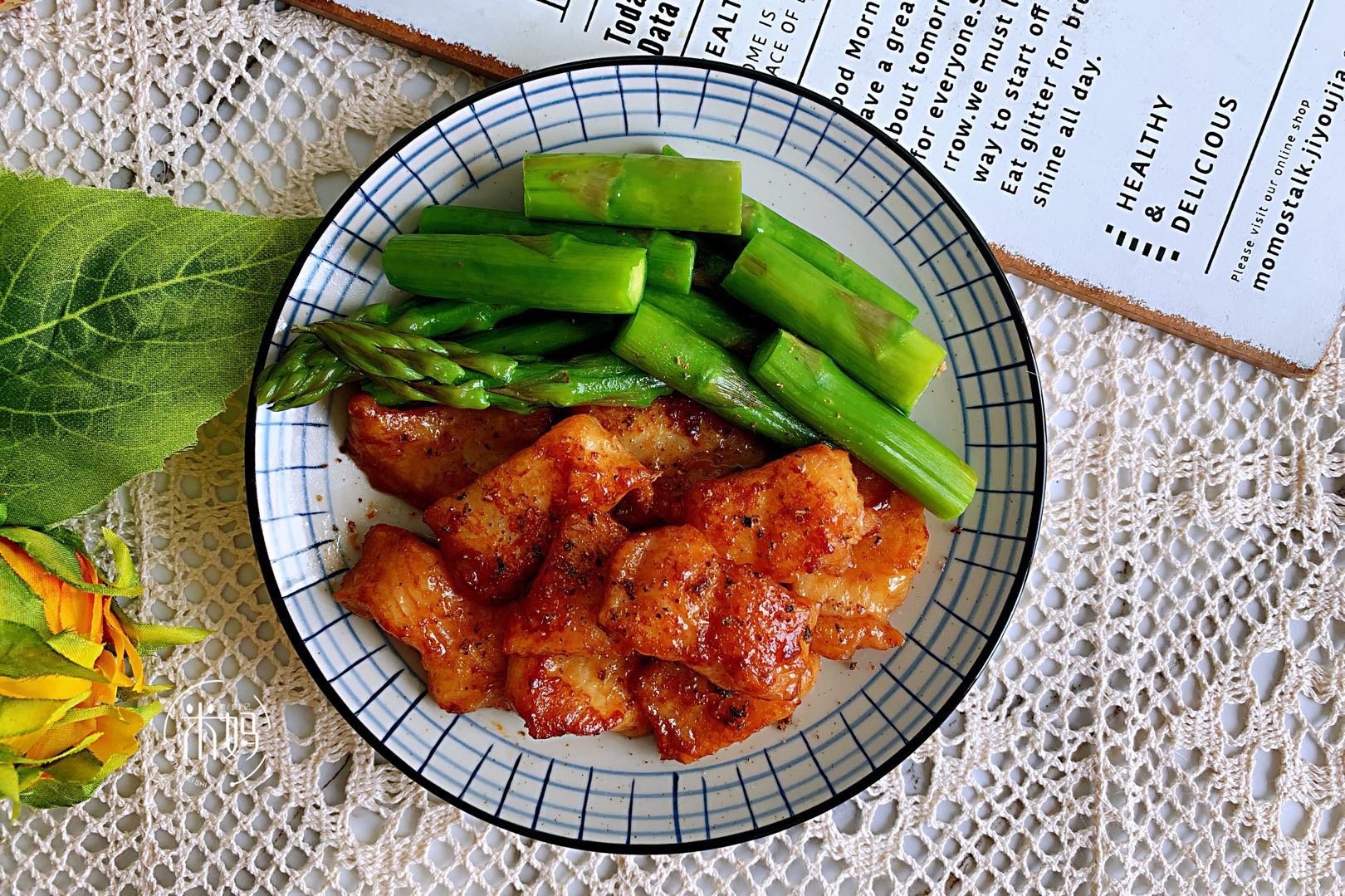 5、 小火慢慢煎至龙利鱼变成金黄色,煎熟透就可以关火盛出,放入芦笋的碗中即可。