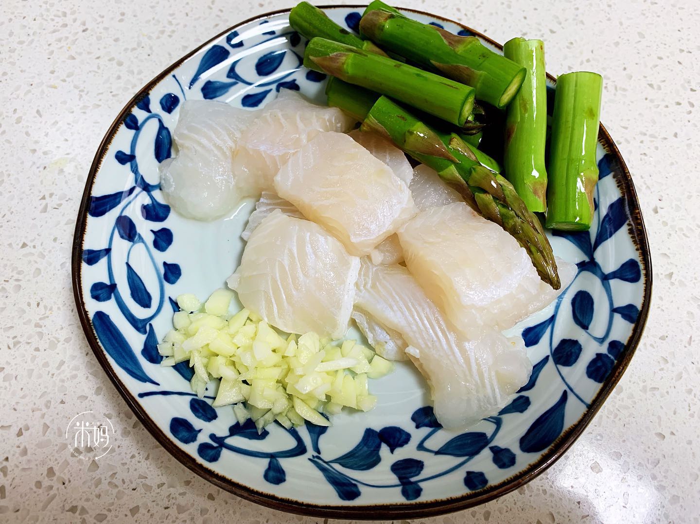 1、 把龙利鱼切成块,大蒜拍碎切末,芦笋洗净切小段。