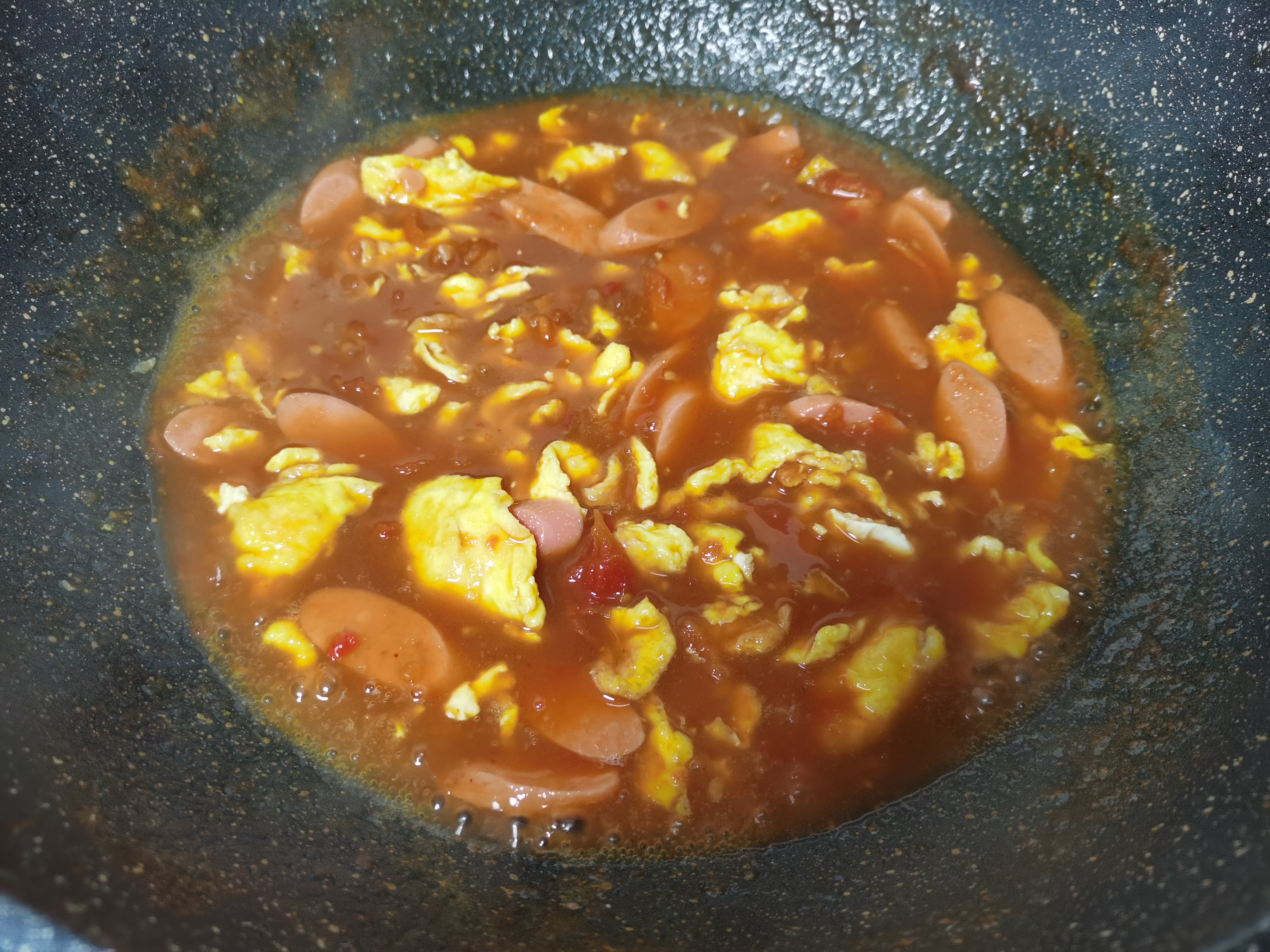食材:鸡蛋,火腿肠、番茄、面条(挂面)