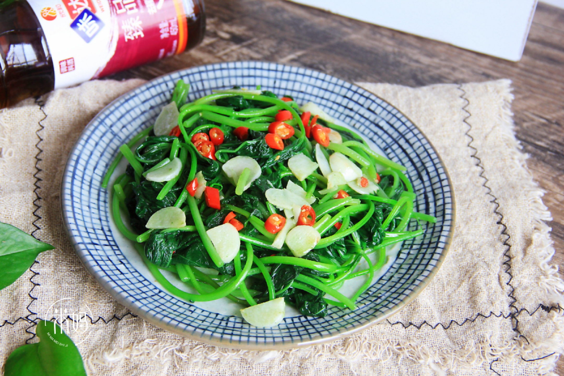 食材:红薯叶,大蒜,小米椒,料酒,盐