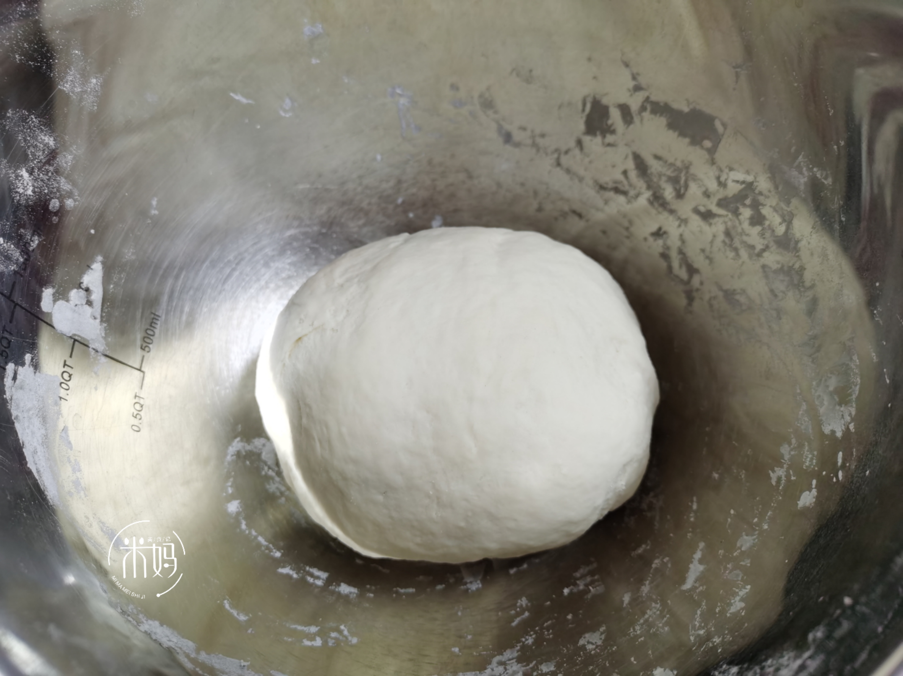 1、 把300克面粉倒入碗里,加入150ml(热水90度左右),用筷子搅拌成絮状,趁热揉成光滑的面团,醒发30分钟。
