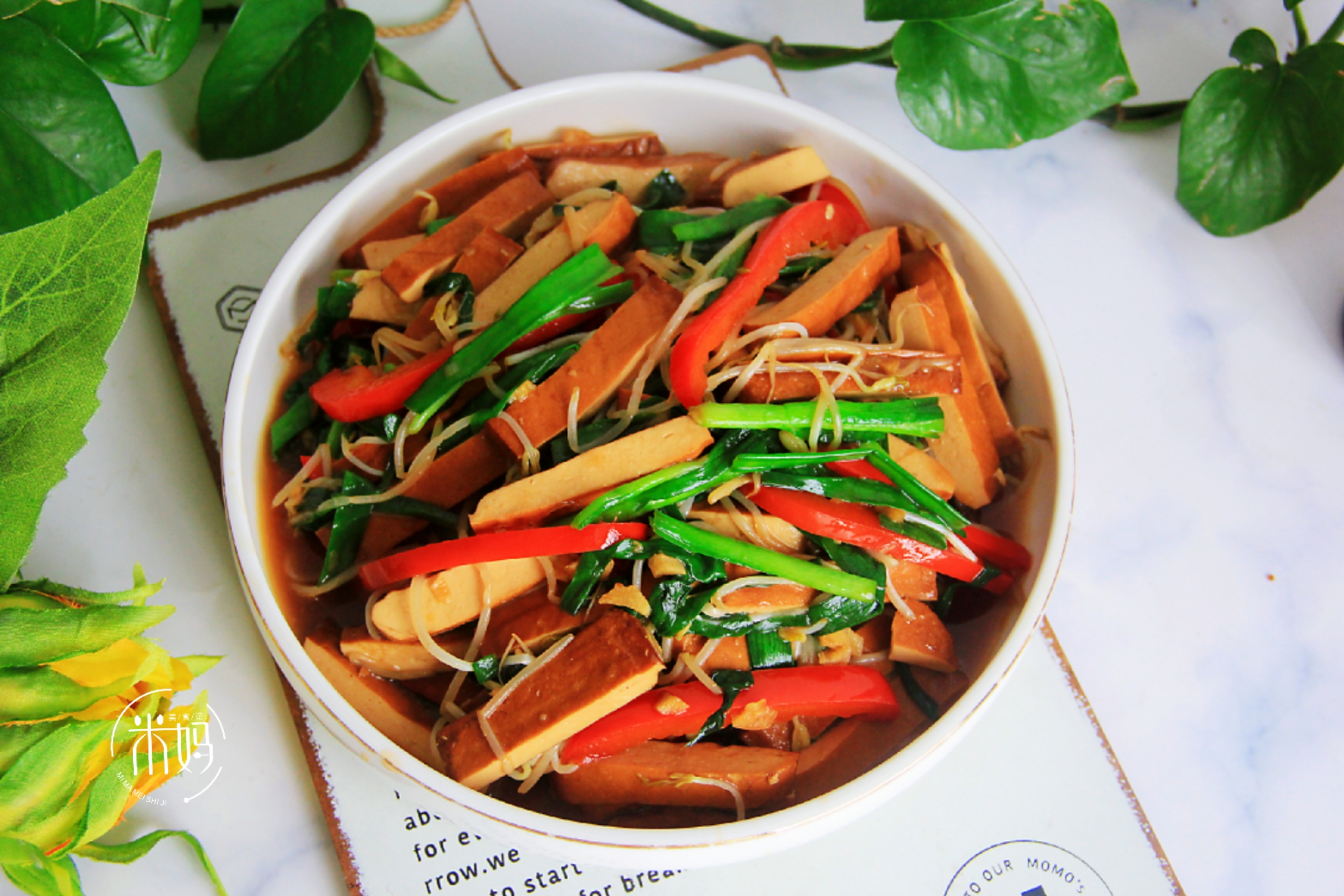 上面所说的除了韭菜之外,当季最嫩的一种蔬菜就是豆芽了。豆芽被西方人成为是中国食品的四大发明之一,清甜脆嫩,高纤维低热量,是特别健康的蔬菜,多吃豆芽还能达到不错的减肥效果。推荐这道韭菜豆芽炒香干的当季时蔬做法给大家,下酒、送饭一级棒,一吃就停不下来那一种!这里的香干是我们平时最常吃的一道豆制品,豆香浓郁,加上脆嫩的韭菜和清甜的豆芽,一脆一嫩的搭配,鲜香可口,开胃下饭,比吃肉都还香,真是要多开胃就有多开胃,分分钟能让你光盘行动!韭菜豆芽炒香干,一道美味的菜谱,简单易做,好看、好吃、好下饭!